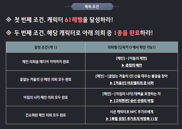 1. 캐릭터 레벨 61레벨이 있어야 하고