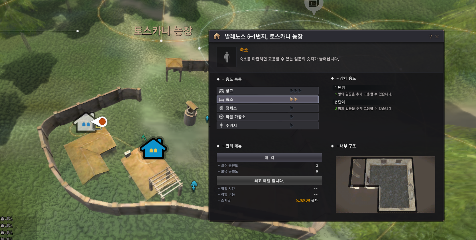 이렇게 해서 숙소 구입을 통해서는 총 7명 고용이 가능합니다.