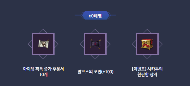50렙부터 60레벨 까지 다양한 보상이 있습니다.